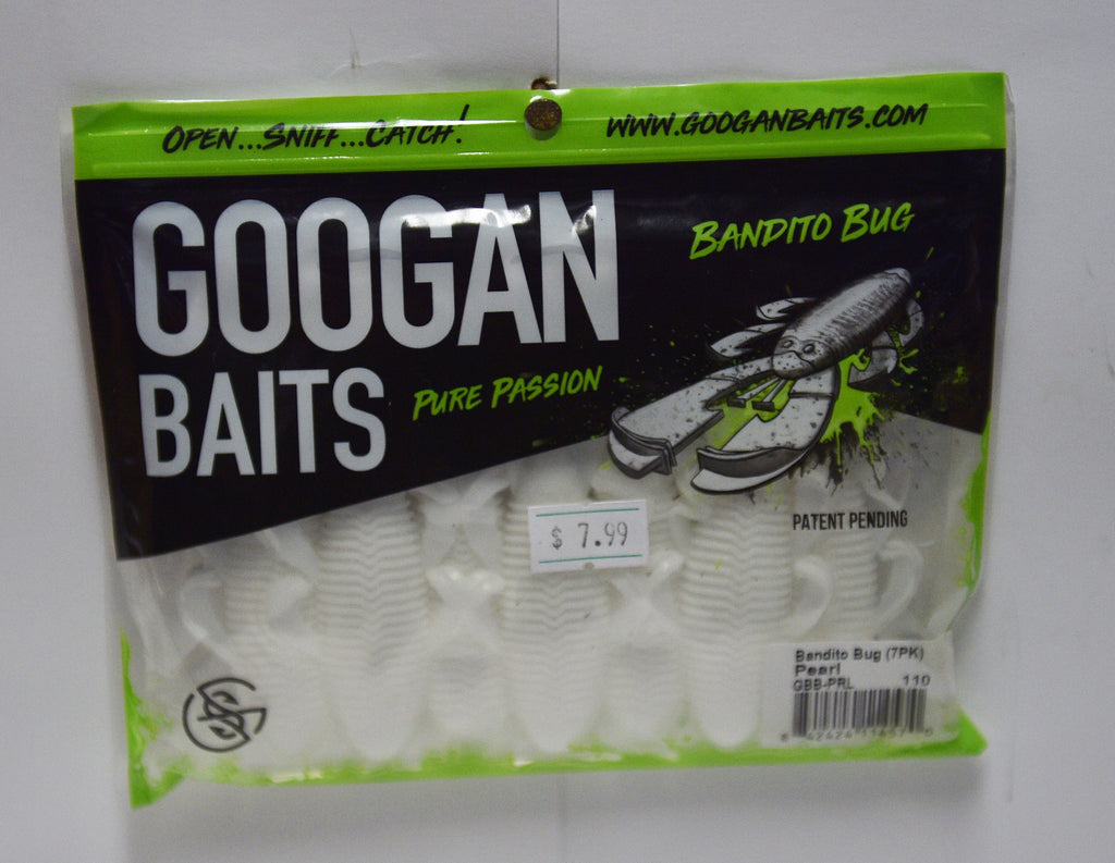 Googan Baits Bandito Bugs are soft plastic baits that delivers fish-enticing action. These Googan Baits bug lures have elongated claws, creepy pinchers, and a ribbed body that fish won't let go, plus a V ridge that delivers the extra wiggle needed to attract the big fish. They're stuffed with salt, and have an alluring slaunch sauce scent.